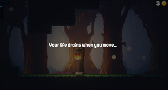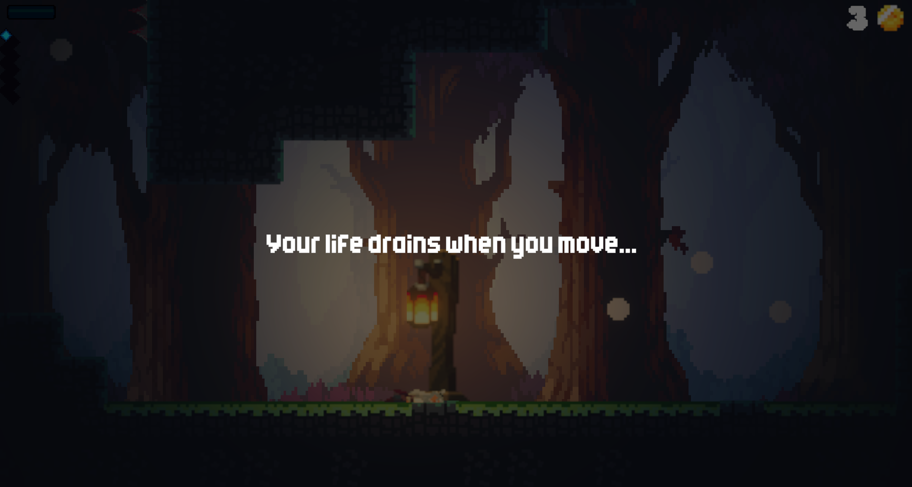 This is a game about trying to escape from a cursed forest, where your life drains as you move. With each death, you can buy upgrades and unlock more time/skills, before being reset back to the start.